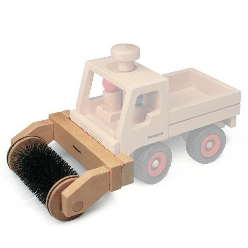 Zeit, einmal ordentlich „reinezumachen“ mit diesem funktionalen fagus-Kranaufsatz für fagus-Unimog und fagus-LKW-Kipper, die man damit im Handumdrehen in Ordnung schaffende Kehrmaschinen umfunktionieren kann. Bestens geeignet, um in der aufgebauten Spiellandschaft einmal kräftig durchzufegen.