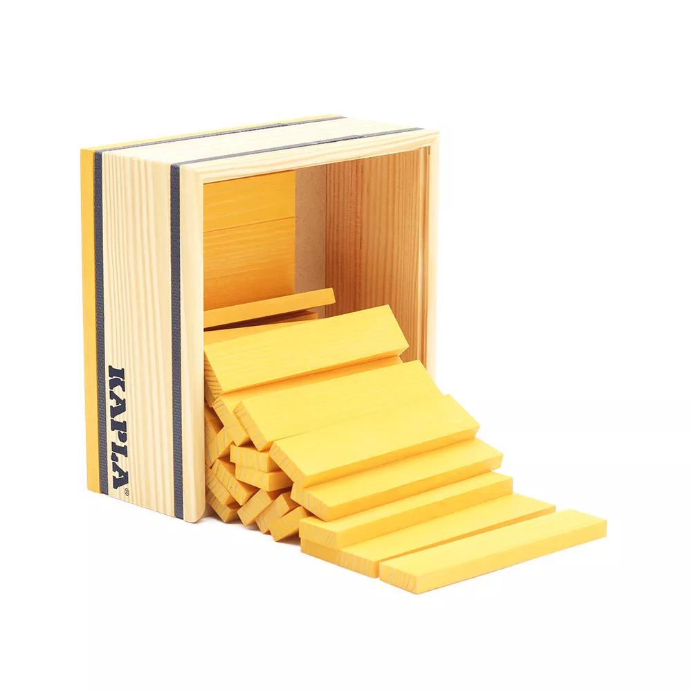 Mit den 40 gelben KAPLA-Plättchen pro Kasten könnt ihr euren Bauwerken tolle farbige Akzente verleihen. Erhältlich sind insgesamt zwölf hübsche Farben zur Ergänzung eurer Sammlung und zur Ausschmückung eurer Ideen.
